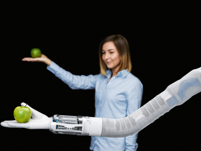 Che si tratti di afferrare, tenere o girare, toccare, digitare o premere, nella vita di tutti i giorni usiamo le mani per i compiti più diversi. A questo proposito, la mano umana, con la sua combinazione unica di potenza, destrezza e capacità motorie, è un miracoloso strumento della natura. Cosa potrebbe esserci di più naturale che dotare i robot, negli spazi di lavoro collaborativi, di una pinza ispirata a questo modello della natura, che risolva vari compiti imparando attraverso l'intelligenza artificiale? Festo mostra la mano robotica... Leggi communicato stampa Immagine Festo SE & Co. KG 2021/06/07 | Globale La robotica pneumatica incontra l'intelligenza ... Che si tratti di afferrare, tenere o girare, toccare, digitare o premere, nella vita di tutti i ... Leggi communicato stampa